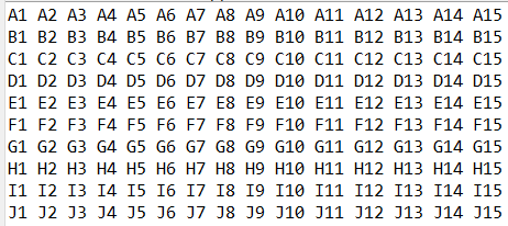 ✨다음은 A1~A15까지, A~J까지의 영화관 좌석을 배열을 통해 생성해 보도록 하자. 코드는 다음과 같다.
